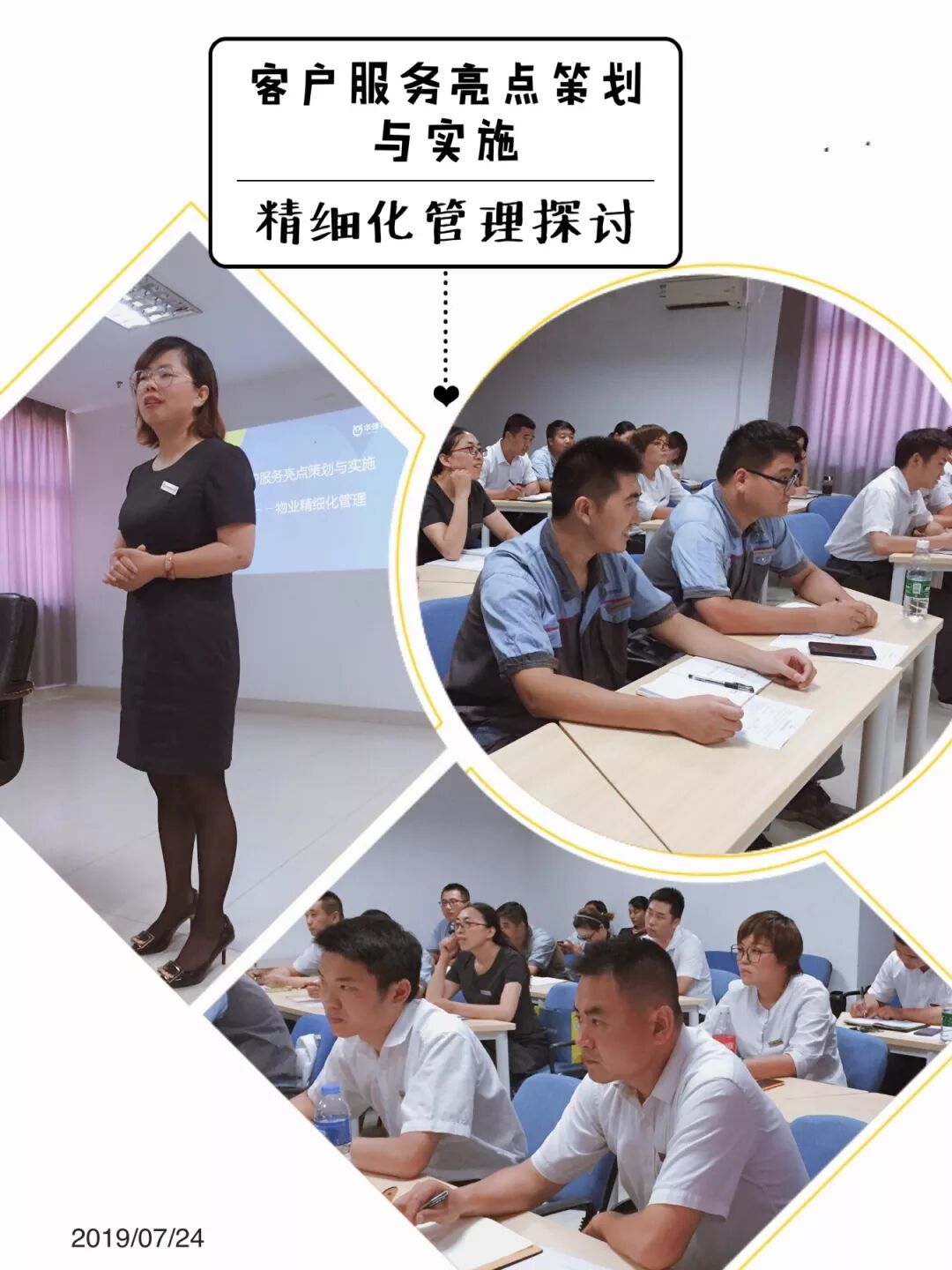 1 高温下的坚持人 烈日炎炎,自大暑过后,芜湖城市气温节节攀升,为保证服务质量不受到影响,华强物业芜湖分公司各项目工作人员,仍奋斗在一线,坚守岗位。 2 华强物业2019年上半年工作总结会议如期召开 7月17日,华强物业召开了2019年上半年经济工作会议,新城市集团领导冯士伟、华强物业党委书记、董事长何良俊在会上作了重要讲话,总经理叶小春对上半年工作进行了总结,并对下半年工作进行了部署。华强物业经营班子、各分公司负责人、总部职能中心负责人及公司中层以上干部等近200人参加了会议。 会上,芜湖分公司韦彬总经理以分公司首位发言者身份,用详实准确的数据对上半年主要经济指标以及重点工作完成情况进行回顾分析,对下半年工作提出:差异化服务模式、竞争上岗机制、匠才培养计划、管家认证制度等明确规划。 下半年,华强物业芜湖分公司将在新城市集团的正确领导下,坚定信心、统一思想,创新思路,迎难而上,以实干实绩落实会议精神,确保全年目标任务顺利完成。 3 业务培训取实效 为加强公司管理队伍建设,更好提升客户服务品质,公司于7月24日举办了精细化管理培训。 七个项目主要负责人,职能部门管理人员、各岗位骨干精英,悉数参加,培训讲师结合不同岗位需要,联系公司实际和岗位职责,以PPT课件、具体数据、生动实例等,现场分享了客服服务亮点策划及实施等相关内容。通过此次培训,华强物业人对客服服务的认知与知识储备均得到了很大的提升 4 第二季度员工生日会圆满结束 为关怀员工,营造和谐工作氛围,华强物业芜湖分公司以季度为单位,为第二季度(4月、5月、6月)寿星们送上生日祝福,并安排生日旅行。 此次,旅行行程点分别为参观岩寺新四军旧址和夹溪河漂流 ,不仅让员工们认识历史,感受红色文化熏陶,同时也放松心情,增强团队凝聚力。 5 七心服务故事 朋友,我们下来慢慢说 2019.7.24日上午09:46分,华强广场小区巡逻员周业海正在小区内巡逻,突然看到一户主卧窗户外檐口上站着一名女子,该女子大声哭诉,伴有跳楼迹象,情绪十分不稳定。巡逻员周业海拨打班长朱万明电话进行求助后立即跑向该住户,班长朱万明随后又通知黎寿军、丁军火速赶到现场支援并向秩管队长徐朋汇报了情况。秩管队立即启动突发事件应急预案并拨打110和119救助电话,调动其他区域巡逻岗,安排4人在楼下以防止女子坠楼,队员黎寿军、周业海两人进屋后对该女子进行劝导安抚情绪,待女子情绪稍微稳定,快速将女子从窗口救下,避免了一场事故的发生,同时目睹事情过程的小区其他业主纷纷称赞,得到了业主的一致好评。 小伙子 ,太负责了 7月上旬的一天,家住德邑风尚小区5号楼李阿姨和朱阿姨,一起相约来到了物业服务中心,李阿姨表示:家中房屋渗水问题多年来一直未得到解决,在近一年的时间里,通过项目陈经理以及楼栋管家周健积极的协调与跟进下,终于将令人头疼的渗水问题彻底的解决了,一家人都非常的感谢物业工作人员尽心尽责的态度以及热情的服务。朱阿姨则表示:近几年来小区内绿化树木生长较快,因自己家住在二楼,长时间晒不到阳光,家中阴暗且湿气大,她向物业反映了以后,没想到第二天楼栋管家周健就带领秩管师傅们来到了现场查看,并对周边的绿化树木展开了修剪工作,绿化修剪难度较大,看到师傅们被汗水浸湿的衣衫丝毫没有一点怨言,她非常的感动。阿姨们表示近一年来物业服务工作变化特别的大,长期以来没有解决的问题现得到了解决,特地送来锦旗,表示对近期物业工作的认可以及工作人员热心服务的感谢。 不客气,举手之劳 2019.7.13华强广场客服赵林林在D座大厅捡到业主裴秋申丢失了汽车驾使证,并送还给本人。业主非常激动,他是新疆户口,汽车驾使证丢失要回新疆当地补办,业主正要去买飞机票。非常感谢华强广场客服赵林林,2019.7.16早上业主裴秋申送来了锦旗表示感谢。 6 美好生活 “七夕情缘故事”正值传统情人节来临之际,华强物业微信公众号为业主们精心策划情人节线上活动,业主投稿不断,花式表白层出不穷,现活动倒计时中,还可以参加哟 不知道的小伙伴戳这里 真诚的服务,如微风,如细雨…呵护倍至,如影随行。本月,华强物业便民服务活动持续践行,贴心为业主在夏日送上一杯解暑的绿豆汤、一瓣解渴的西瓜,免费观影、免费义剪、为业主磨刀、修理小家电、测甲醛..... 长按二维码关注我们 ~七夕活动福利 | 7张照片,7个爱情故事